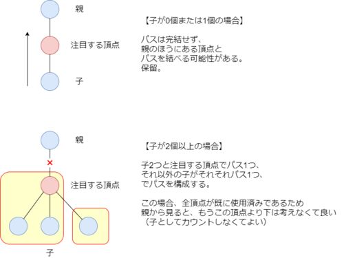 Summer Festival Contest 2018 (Division 1) - AtCoder 結果は2完で7位でした。D問題の最速ACも取れちゃいました。 DとEを振り返ります。 D - 木からパスへ (Tree--->path) D - 木からパスへ (Tree--->path) 解法 問題の操作は、以下のように考えることがで…